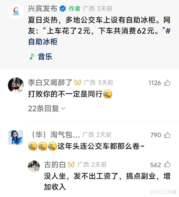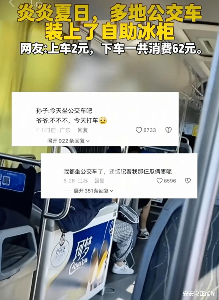 公交车推出这个创举后,有人开始感慨公交车再也不是最物美价廉的出行交通方式了。特别是那些带着孩子坐公交车的父母、老人等,花2块钱上公交车,结果孩子在车上购买冰镇饮品就花60元了。